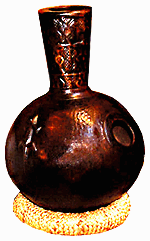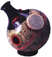 The beautiful Udu Drum originates from Nigeria. Surprisingly, it began not as a percussion instrument, but as a common clay pot made for carrying water. When a potter from the ancient Ibo tribe inadvertently made an opening in the side of one of his vase-shaped water vessels, he discovered the pot's earthy, musical sound. Because some believed its haunting tone to be the "voice of the ancestors," the simple side-hole drum - sculpted entirely from earth, water, fire, and air - came to be an important part of religious ceremonies in southern and central Nigeria. Though the drum had different names depending on the region in which it was used, "udu" was the Ibo name, meaning both "pottery" and "peace" in the tribal language.